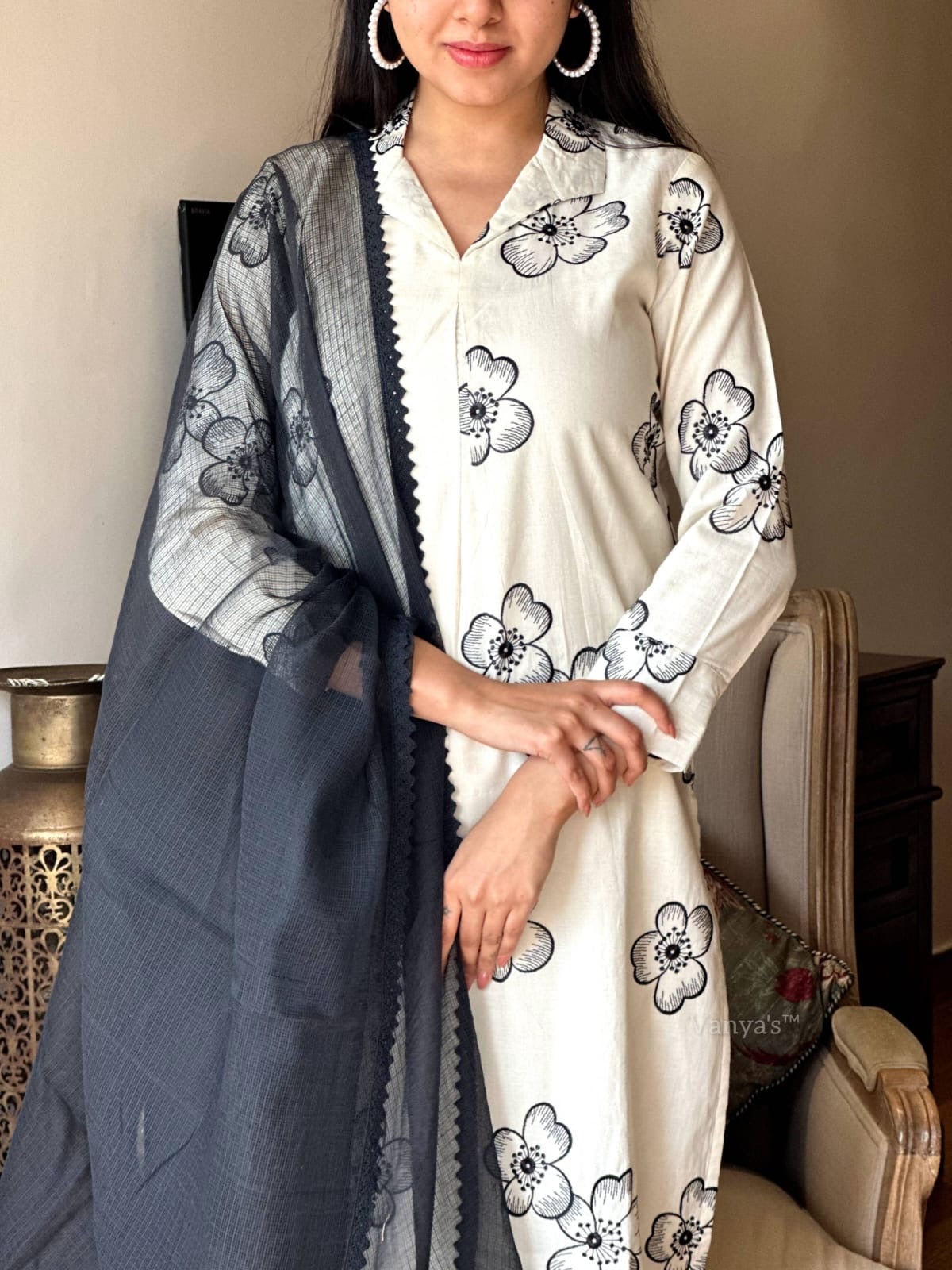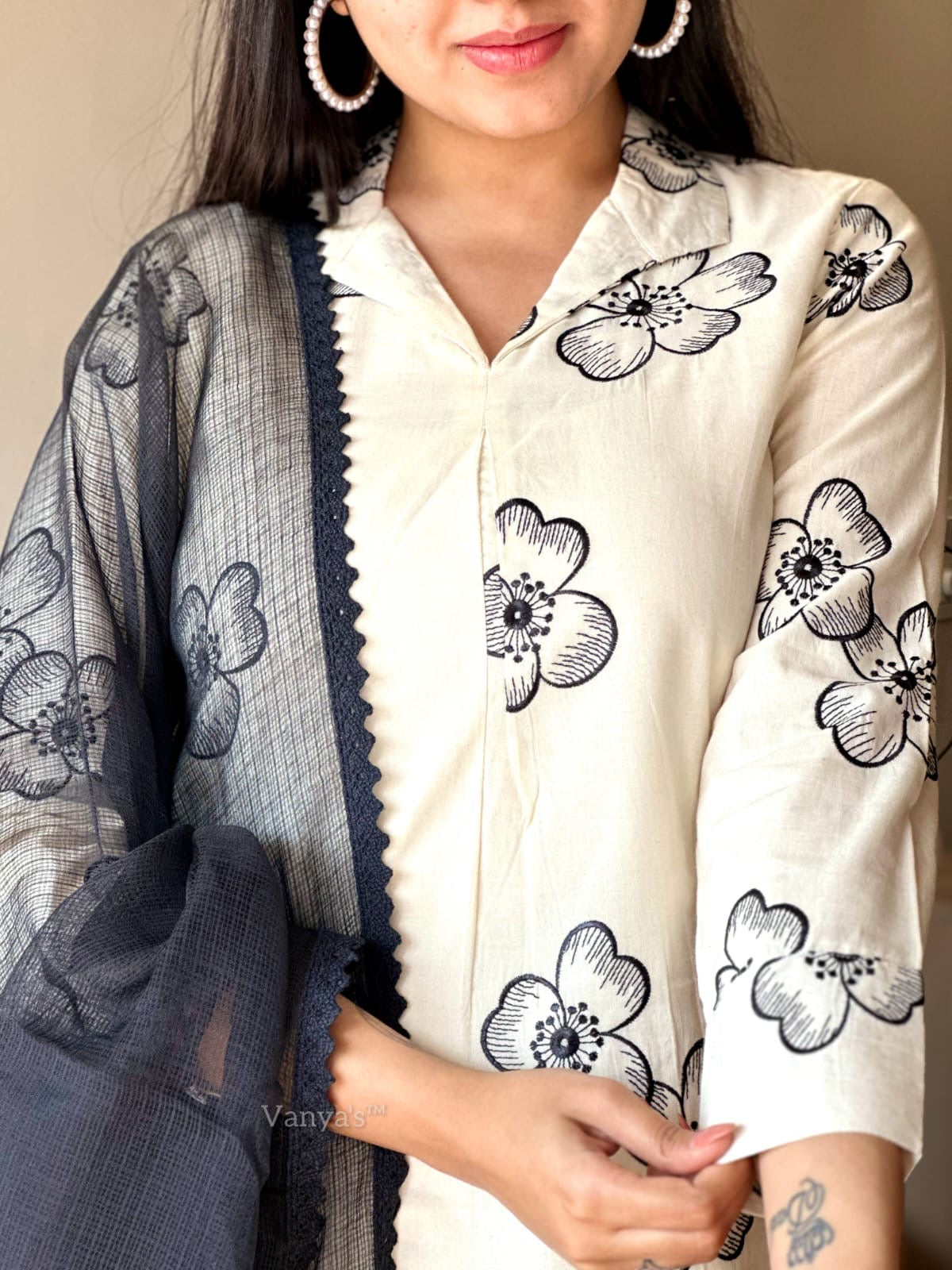 Kurta pure cotton hand block. Bottom is cigratte pant style paired with cotton mul duppata