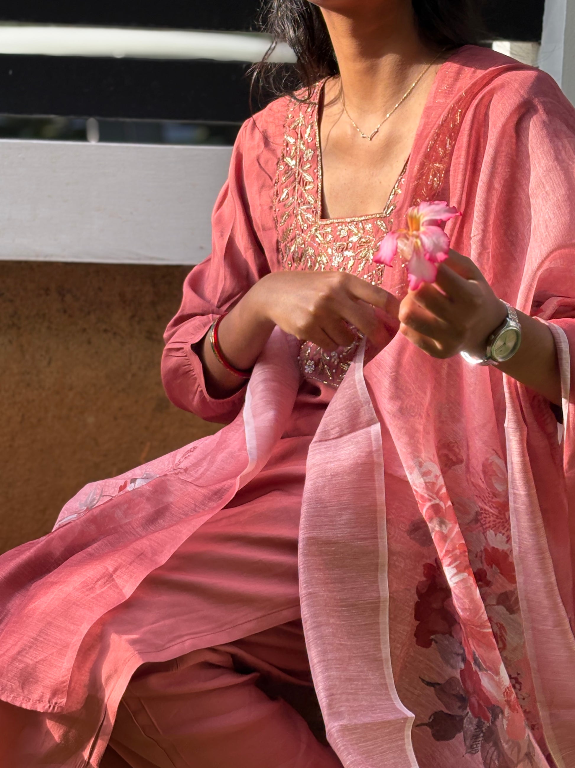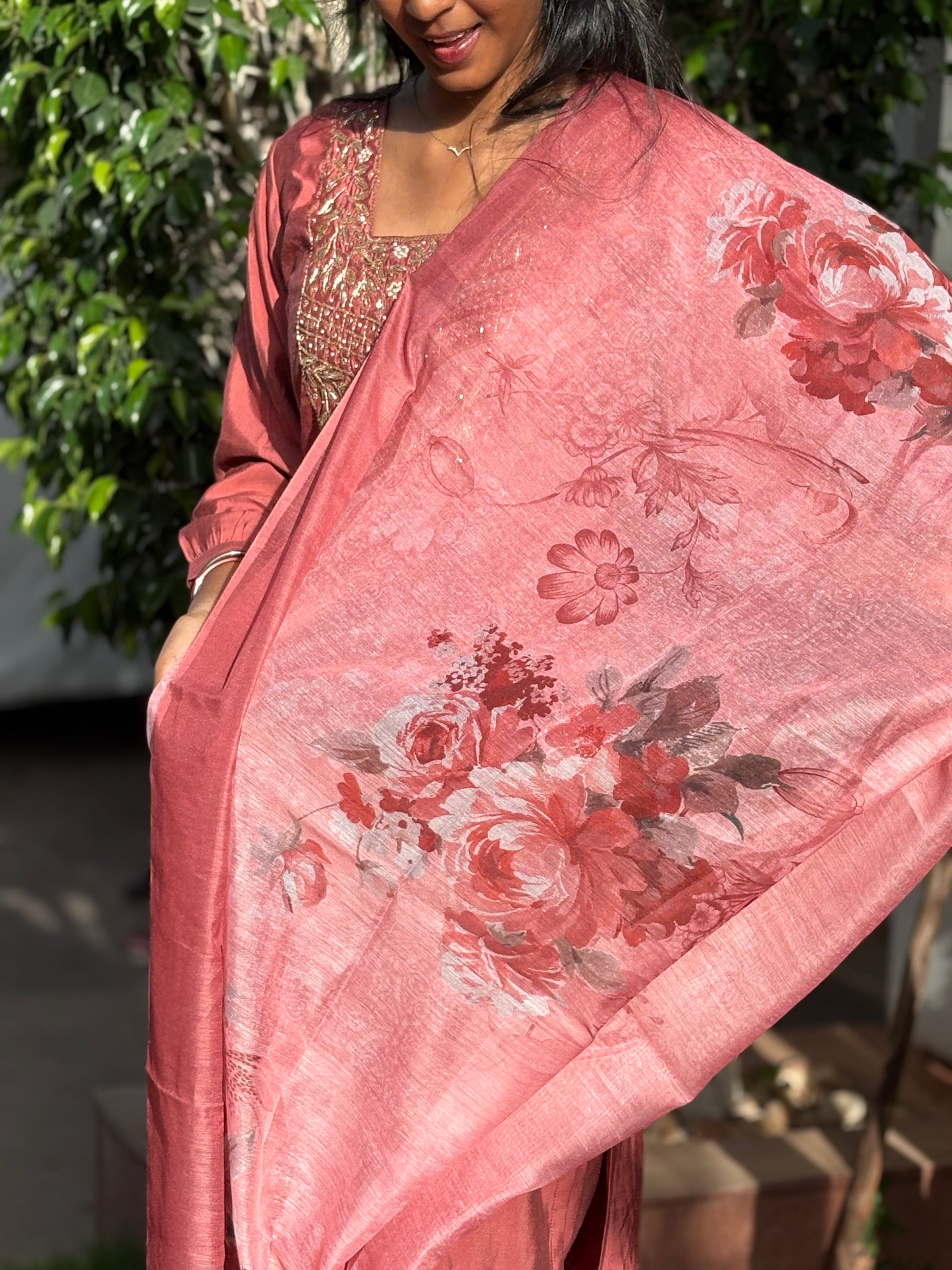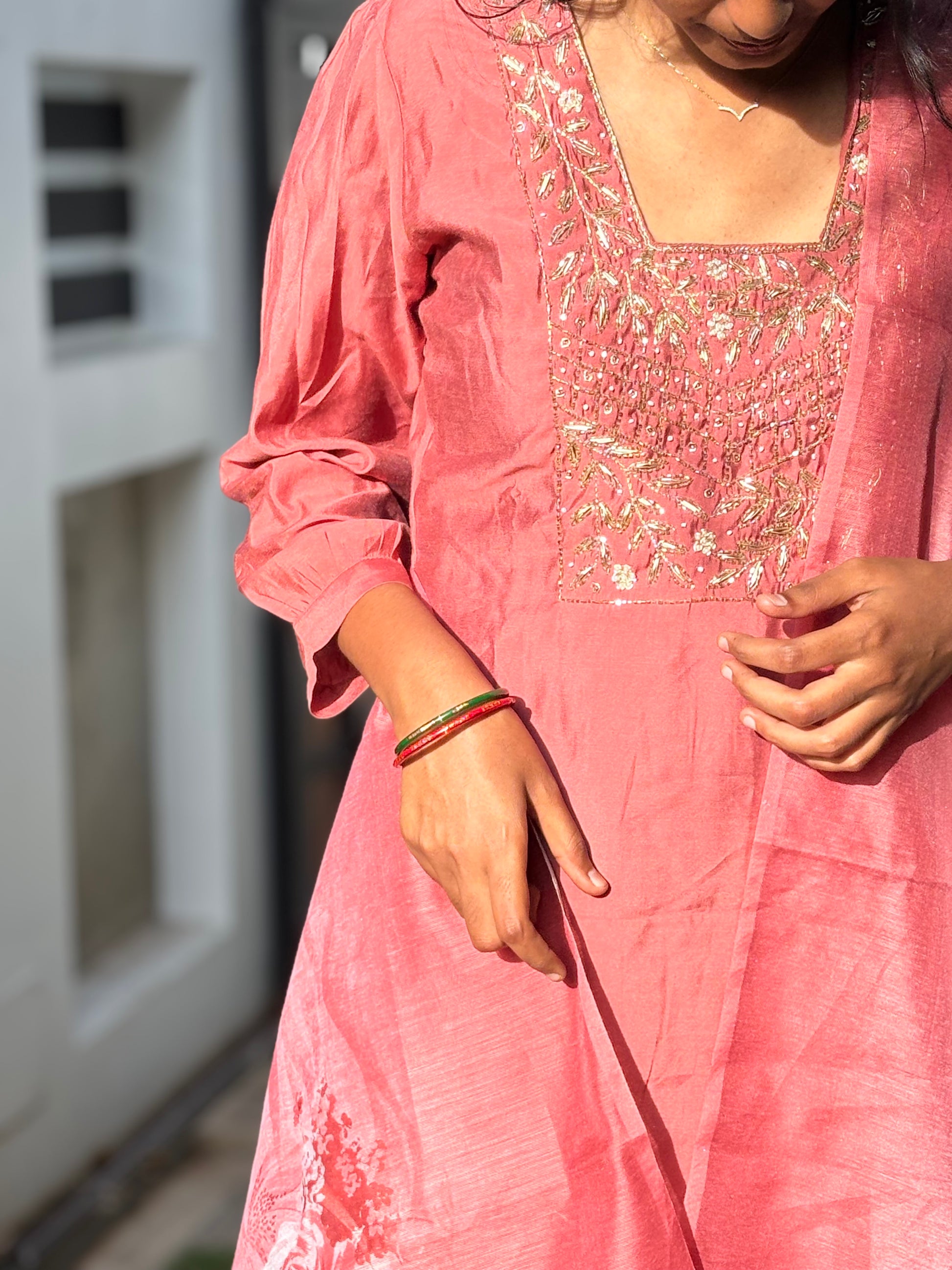 with dola silk pant length 38". Paired with pure digital print chanderi