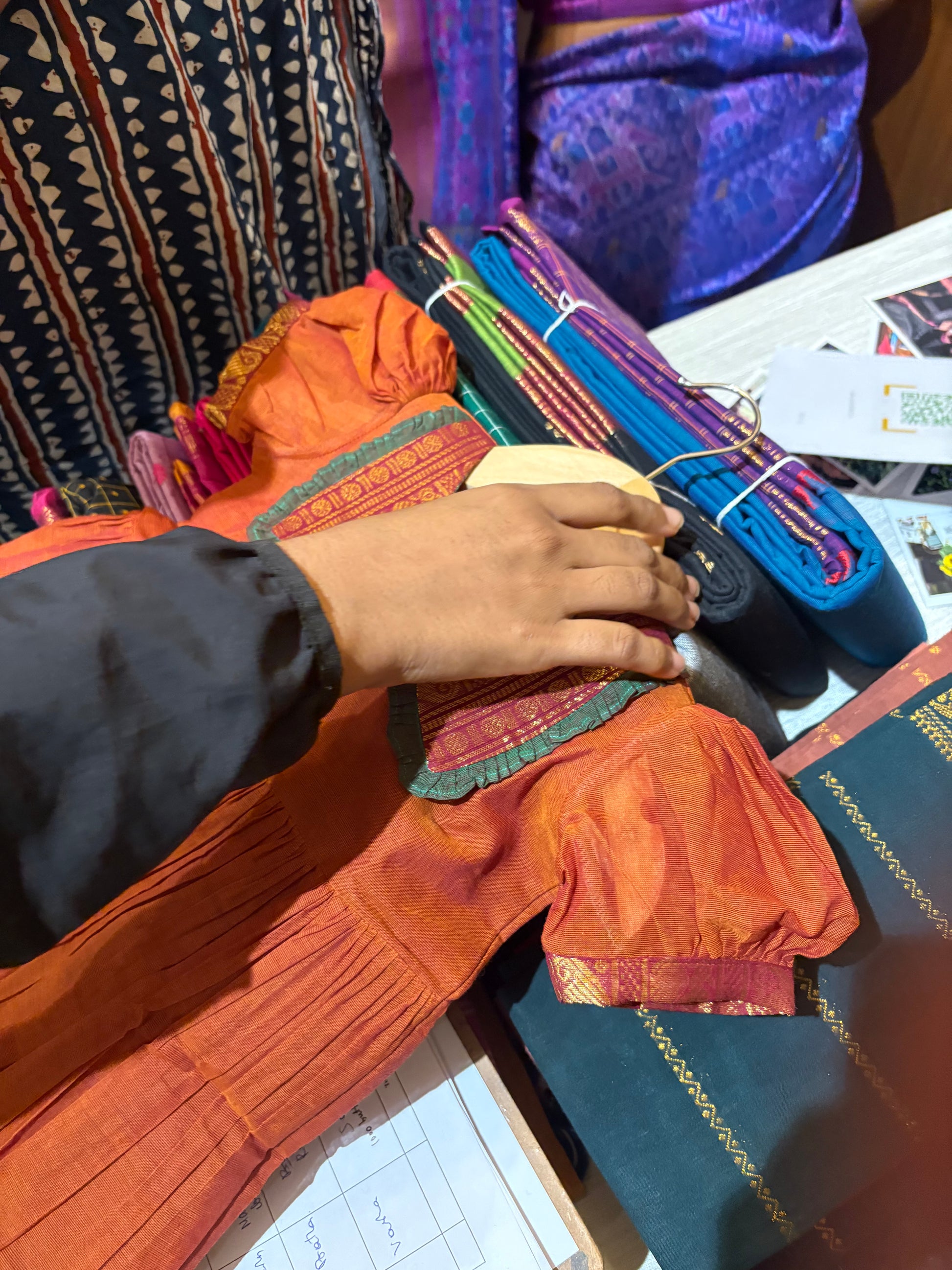 > Ironing – Avoid harsh scrubbing, especially on the butta or zari border to maintain its shine.
